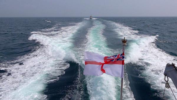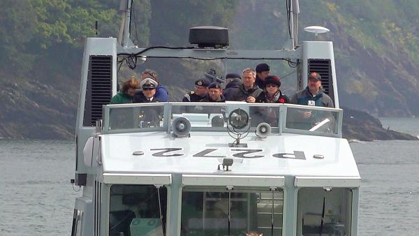 HMS Exploit leaving for the 3-1/2 hour return journey to Dartmouth