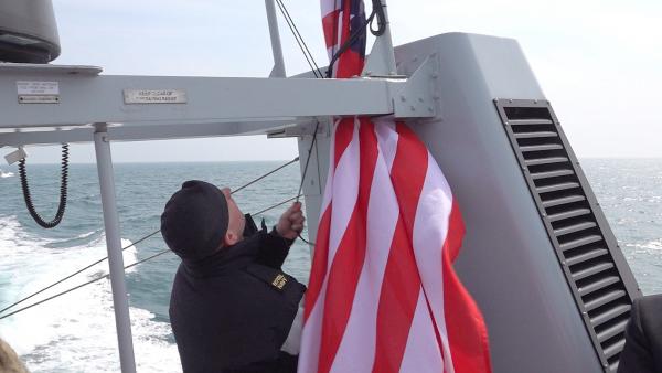 Raising the American Flag on board the HMS Exploit